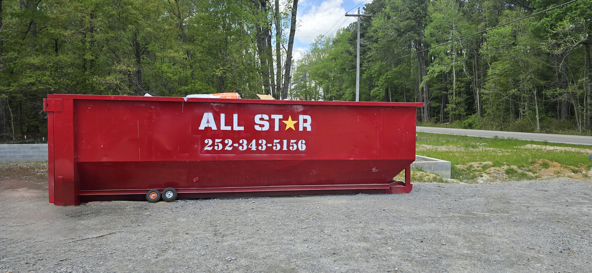 All Star Waste Containers is proud to have provided dumpster rental to North Carolina, including Tarboro, Nashville, Rocky Mount, and Wilson, NC for over 15 years. A roll-off dumpster is temporary and has the capacity to hold a huge amount of trash, which makes these dumpsters ideal for large construction or demolition projects. We rent to both residential and commercial clients, we also offer concrete disposal.